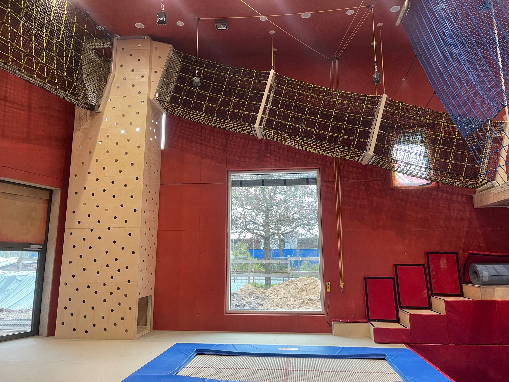 Neubau einer 4-Fach Sporthalle. Unsere Leistung: Hier wurde von uns der neue Multifunktionsraum mit diversen Kletter- elementen, Bungee Longe, Tumblingbahn, Boulderwand sowie Sprunggrube gebaut. Es erfolgte die Planung, Herstellung und Montage durch uns. Zusammenarbeit mit